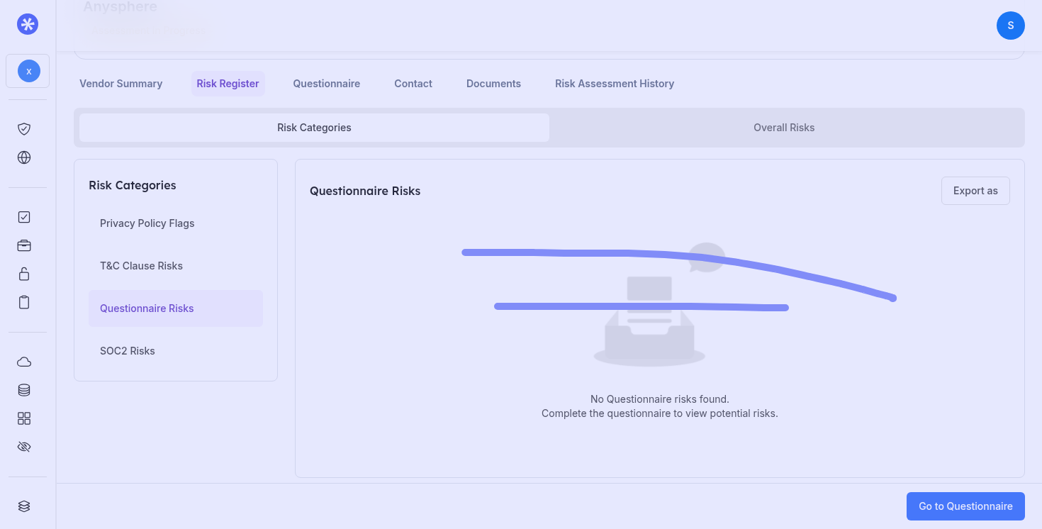 Questionnaire getting filled in from SOC 2should be show some progress bar